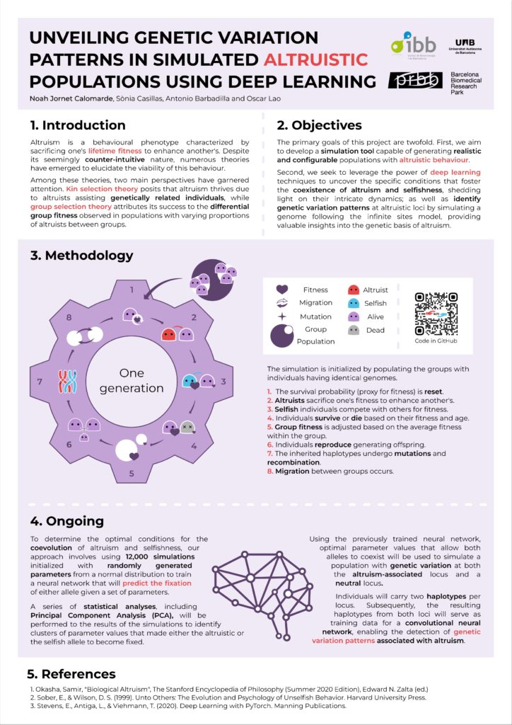 Unveiling genetic variation patterns in simulated altruistic populationsusing deep learning